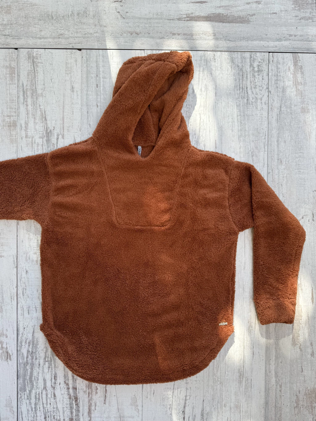 Confeccionado en corderito bifaz importado, el Buzo Alaska es una prenda súper cómoda y abrigada, ideal para el invierno. Presenta una terminación redondeada tanto en frente como en espalda, con puños en las mangas realizados en la misma tela. Cuenta con una amplia capucha doble forrada que aporta mayor abrigo y confort. Un detalle único y distintivo es el aplique en la espalda, que le da un toque especial y exclusivo.